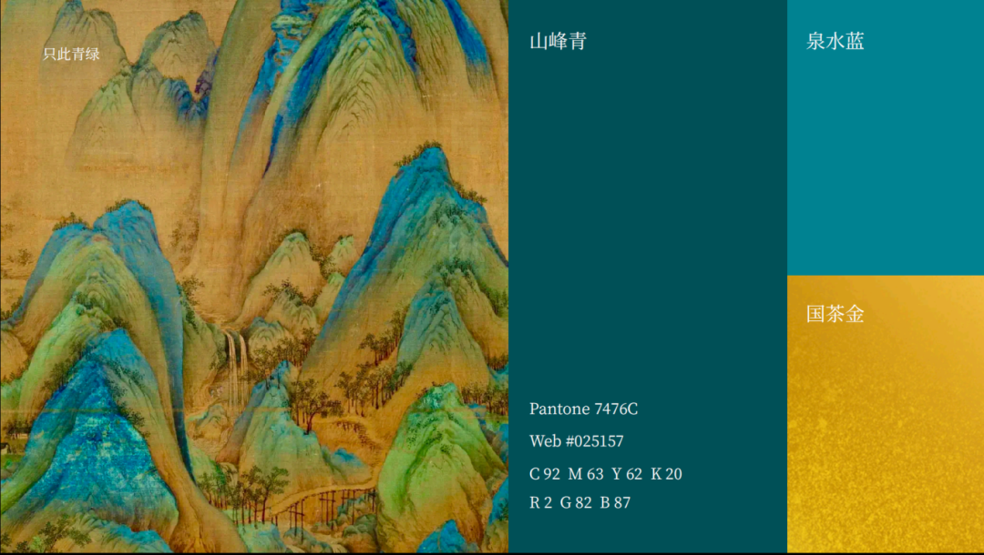 山峰一号的“山峰青”有着非常深厚的文化底蕴,包含了九大内涵。第一,山峰之色。中国人最习惯把山称为“青山”,并且形成浓厚的了“青山情怀”,所以说山峰青是山峰之色。第二,天子之色。早在周朝,天子在春季祭天时的礼服颜色便是青色,是一种非常高贵的颜色,所以说山峰青是天子之色。第三,正色之首。“青、赤、黄、白、黑”是传统文化中的五大正色。青色排名第一,所以说山峰青是正色之首。第四,东方之色。在传统文化中,青色代表了东方,同时也代表了新生与希望,所以说山峰青是东方之色。第五,中国国色。全世界所说的“东方大国”就是指我们中国。再加上青色一直是中国人最喜欢的颜色之一,所以,中国青和中国红已经被广泛地认为是中国的两大国色。第六,生态之色。绿水青山就是金山银山。在新的时代,青山更是进一步成为了生命的象征、自然的象征、生态的象征,所以说山峰青是生态之色。第七,名士之色。历朝历代,中国的名士都最为喜欢青色,因为青色与名士的文化理念与人格境界最为契合,所以说山峰青是名士之色。第八,文艺之色。“青山”是中国诗词中出现频率最高的词汇之一,青绿山水是中国画的一个重要流派。青色天生自带着古典文艺的气韵之美,所以说山峰青是文艺之色。第九,天下之色。中国红偏于大气、热闹,中国青偏于高雅、内敛。站在全球视野来看,中国青更适合于走向世界,更能为全世界人民所接受、所喜爱。因此来说,中国青还可以称之为“天下青”,所以说山峰青是天下之色。
